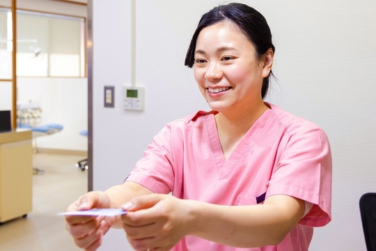 来院されましたら、受付にて保険証と診察券(再診の場合のみ)をご提示ください。その際に問診票をお渡ししますので、記入をお願いいたします。